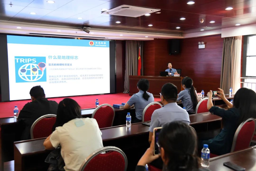 活动中,省检察院知产办成员、第八检察部副主任卢义颖以《检察护航地理标志品牌 共促地方特色产业发展》为题,结合法律规定和省内外知名的案例,从地理标志的保护模式、运用实践和检察机关保护职能入手,深入浅出地分析地理标志保护的重要意义,以及对促进企业和当地产业发展的积极作用,为企业上了一堂生动的法治课。